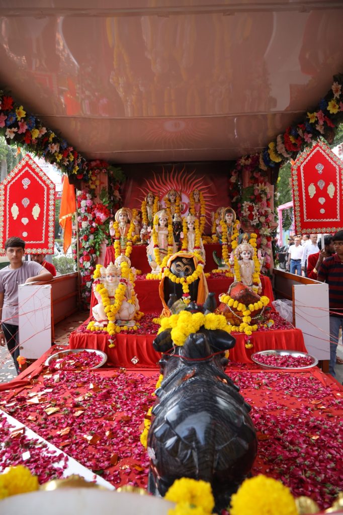 મહાદેવના કામ મહાદેવ ઉકેલે આ યથાર્થ રૂૂપમાં સાચી ઠરી છે. શોભાયાત્રાના દિવસે એકબાજુ વરુણદેવએ પ્રકોપ વરસાવી રહ્યો હતો ત્યારે શોભાયાત્રા શરૂૂઆત થાય તે પહેલા જ વરુણદેવ એ ધરતી ઉપર જોરદાર અમીછાંટના કરીને ધરતી ઉપર ઠંડક કરી રાજકોટના ઐતિહાસિક રાજમાર્ગોને પવિત્ર કરી દીધા નટેશ્વર મહાદેવ મંદિરના જીર્ણોદ્ધારનો સંકલ્પ લેનાર મનોજ મારું અને સુરુભા જાડેજાના દેખરેખ હેઠળ નટેશ્વર મહાદેવ મંદિરનો જીર્ણોદ્ધાર કરીને સુંદર શીખરબંધ મંદિરનું નિર્માણ કરવામાં આવેલ છે. નટેશ્વર મહાદેવ મંદિરમાં મહાદેવજીના પુન: પ્રાણ પ્રતિષ્ઠા નિમિતે શનિવારે સાંજે શોભાયાત્રા શેઠ હાઇસ્કુલથી પ્રસ્થાન થઈ ત્યારે હર હર મહાદેવના નાદ સાથે સોરઠીયાવાડી સર્કલ, પવનપુત્ર હનુમાન ચોક થઈ 80 ફુટ રોડ ઉપર થઇને ભક્તિનગર સર્કલ થઈ મંદિર સુધીની આ શોભાયાત્રામાં ઉઉંના તાલે ભાઈઓ, બહેનોએ ભોળા ભક્તના ભજનોની રમઝટ બોલાવી હતી. સાથે ભાઈઓની રાસ મંડળી એ રાસ લીધા હતા. શોભાયાત્રા અને રાસમંડળીઓનું ઠેર ઠેર ફૂલોનો વરસાદ કરી ઠેર ઠેર સ્વાગત કરવામાં આવ્યું હતું.
