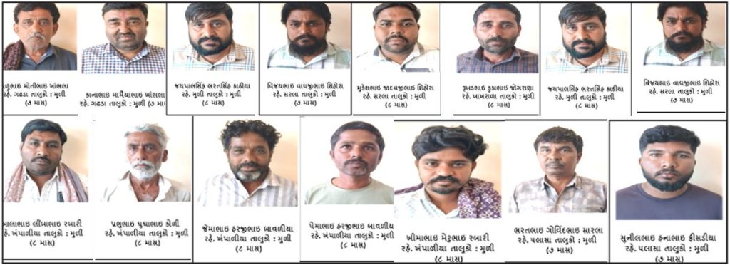 (13) ખીમાભાઇ મેરુભાઇ રબારી રહે. ખંપાળીયા તાલુકો : મુળી જિલ્લો : સુરેન્દ્રનગર (8 માસ)