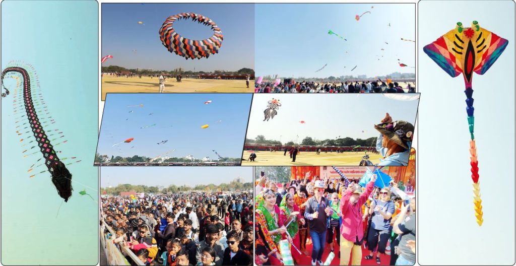 રાજકોટના રેસકોર્ષ ખાતે આજરોજ સવારથી આંતરરાષ્ટ્રીય પતંગ મહોત્સવનો પ્રારંભ થયો હતો. દેશ વિદેશના પતંગબાજોએ જન જાગૃતિના સંદેશા સહિતની વિશાળ કાય પતંગ ગગનમાં લહેરાવી લોકોને મંત્રમુગ્ધ કર્યા હતા. આ પતંગ મહોત્સવમાં મોટી સંખ્યામાં બાળકો સહિત શહેરીજનો ઉપસ્થિત રહી કાર્યક્રમની મોજ માણી હતી. આ આંતરરાષ્ટ્રીય પતંગ મહોત્સવ-2026માં ઓસ્ટ્રેલીયા, બ્રાઝિલ, કોલમ્બિયા, ડેનમાર્ક, સિંગાપોર, થાઈલેન્ડ, સ્વીડન, યુનાઈટેડ કિંગડમ જેવા કુલ-21 દેશો તથા ભારતના મહારાષ્ટ્ર, રાજસ્થાન, બિહાર, ઉડીશા, તામિલનાડુ, સિક્કિમ, વેસ્ટ બેંગાલ જેવા વિવિધ રાજ્યો સહિત 135 થી વધુ પતંગબાજોએ ભાગ લીધો હતો જેને નિહાળવા બહોળી સંખ્યામાં શહેરીજનો ઉમટી પડ્યા હતા. (તસવીર : મુકેશ રાઠોડ)