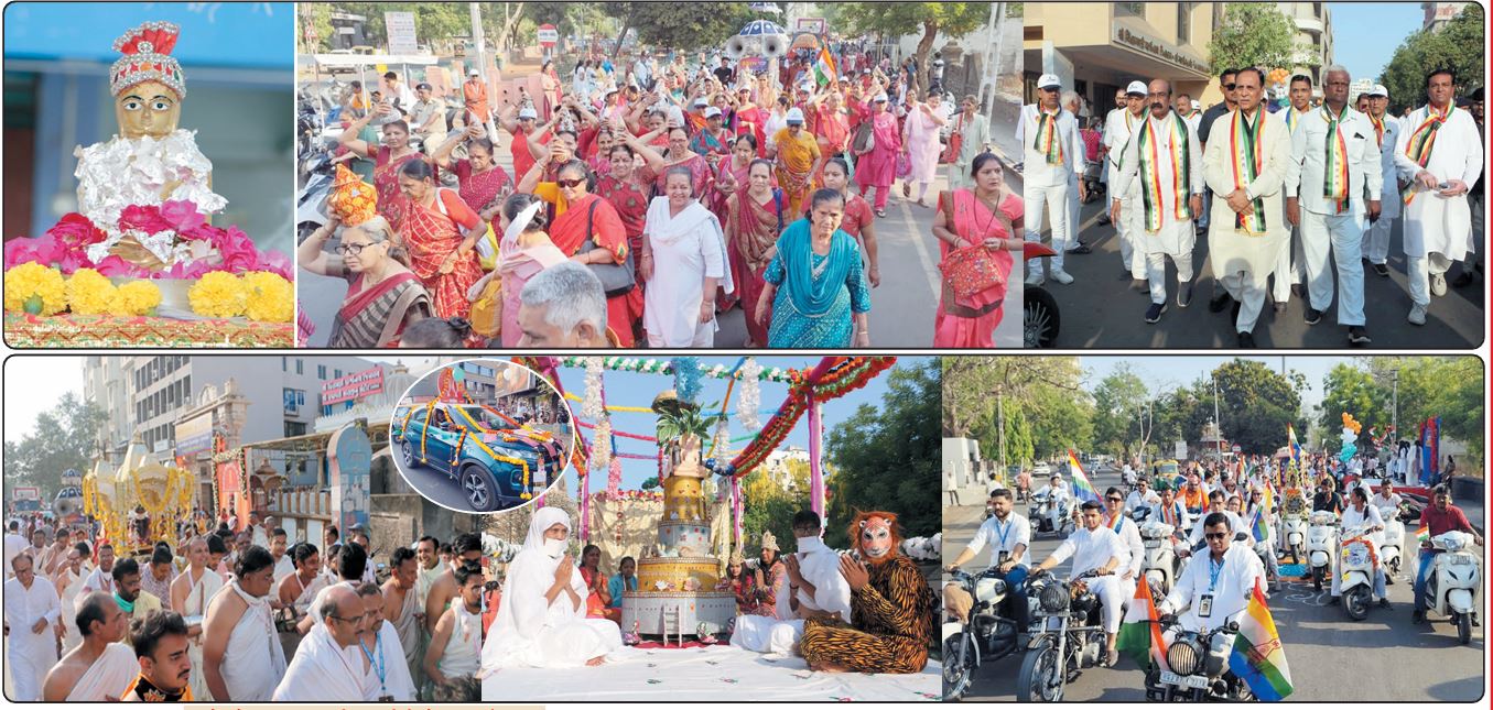 65 યુવાનોએ ઉઘાડા પગે પ્રભુજીનો રથ ખેંચ્યો, વેશભૂષામાં બાળકો, કળશધારી બહેનો અને વિન્ટેજ કારોના કાફલાનું અનેરું આકર્ષણ