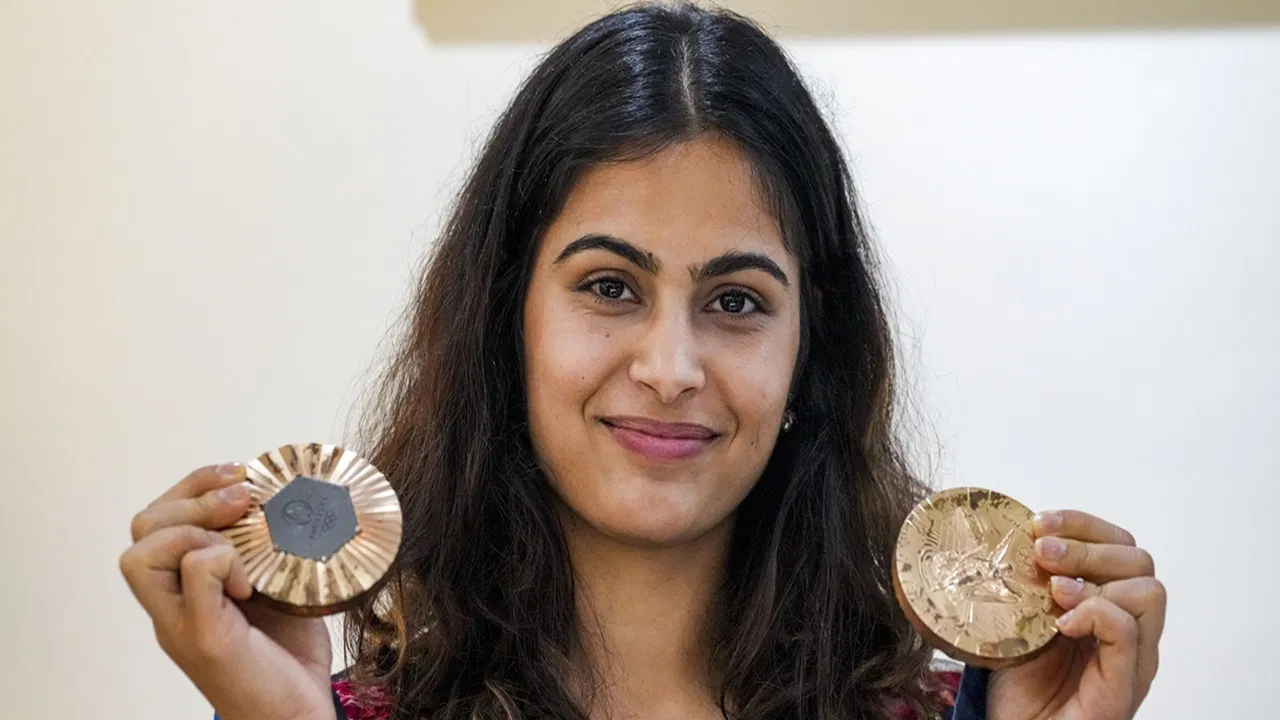 મનુ ભાકરે પેરિસ ઓલિમ્પિકમાં 10 મીટર એર પિસ્તોલ અને 25 મીટર એર પિસ્તોલમાં બ્રોન્ઝ મેડલ જીત્યો હતો. એક જ ઓલિમ્પિકમાં બે મેડલ જીતનારી તે પ્રથમ ભારતીય છે.