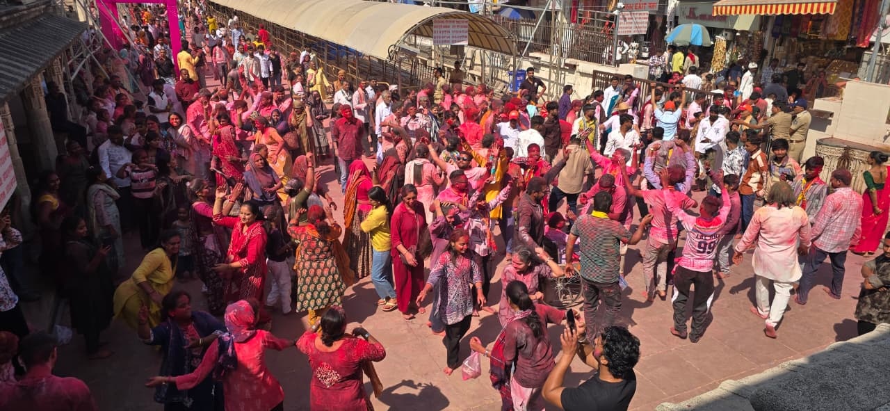 વહેલી સવારથી જ દર્શનાર્થીઓની લાઇનો લાગી, અબીલ-ગુલાલ સાથે ગુલાબની પંખુડીઓની હોળી ખેલી
