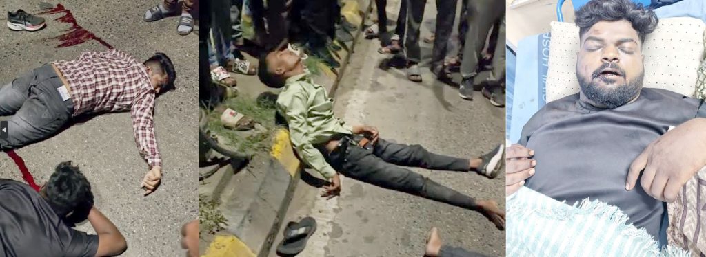 વધુ વિગતો મુજબ કાલાવડ રોડ પર અંડર બ્રિજ પાસે ગઇકાલે રાત્રીનાં એકાદ વાગ્યે અકસ્માત સર્જાતા ત્રણ યુવાનો ગંભીર હાલતમા રસ્તા પર ફંગોળાયા હતા. અને તેઓને 108 મારફેત સિવીલ હોસ્પીટલે સારવાર માટે ખસેડવામા આવ્યા હતા . આ ઘટનાની જાણ થતા માલવીયા નગર પોલીસ મથકનો સ્ટાફ તુરંત હોસ્પીટલે પહોંચી ગયો હતો અને ઘવાયેલા યુવાનોની ઓળખ મેળવવા તજવીજ શરુ કરતા ત્રણેયનાં અનુક્રમે નામ સાધુ વાસવાણી રોડ ગુરૂજીનગરનાં કવાટરમા રહેતા યુવરાજ પરષોતમભાઇ પરમાર (ઉ.વ. 18 ) , વિવેક રાજુભાઇ બારૈયા (ઉ. વ. 17 ) અને મેટોડા ગેઇટ નં 1 બુધવારી બજાર પાસે રહેતા મુળજીભાઇ મરમાર (ઉ.વ. 30 ) હોવાનુ જાણવા મળ્યુ હતુ. આ ઘટનામા યુવરાજ બે ભાઇમા મોટો અને તેમનાં પિતા પલ્મબર કામ કરે છે અને પોતે મજુરી કામ કરી પરીવારને મદદરુપ થાય છે . વિવેેક બે ભાઇ ત્રણ બહેનમા બીજા નંબરનો અને તેનાં પિતા ડ્રાઇવીંગ કામ કરે છે . તેમજ રોહીત પરમાર બે ભાઇ એક બહેનમા સૌથી નાનો છે અને પોતે મજુરી કામ કરી પરીવારને મદદરુપ થાય છે.
