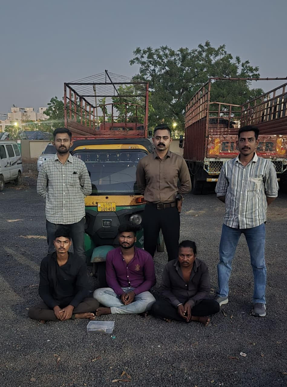 રાજકોટ શહેરના આજીડેમ પોલીસ સ્ટેશનની ટીમે એક રીઢા ગુનેગારોની રિક્ષા ગેંગને પકડી પાડવામાં મોટી સફળતા મેળવી છે. આ ગેંગ રિક્ષામાં પેસેન્જરને બેસાડી, રિક્ષામાં પહેલેથી જ બેઠેલા સાગરીતો દ્વારા ઉલ્ટી કરવાના બહાને ધક્કામુક્કી કરી પેસેન્જરનું ધ્યાન ભટકાવી તેમના ખિસ્સામાંથી રોકડ રકમ સેરવી લેવાની પદ્ધતિ ધરાવતી હતી. આ સમગ્ર મામલે ગત તા. 19/03/2026 ના રોજ એક ફરિયાદી ગોંડલ ચોકડીથી માર્કેટિંગ યાર્ડ જવા રિક્ષામાં બેઠા હતા, ત્યારે તેમની સાથે આ પ્રકારે છેતરપિંડી કરી ₹19,000ની ચોરી કરવામાં આવી હતી. આ ઘટના અંગે આજીડેમ પોલીસ સ્ટેશનમાં ઇગજ ની કલમ 303(2) અને 54 મુજબ ગુનો નોંધવામાં આવ્યો હતો.