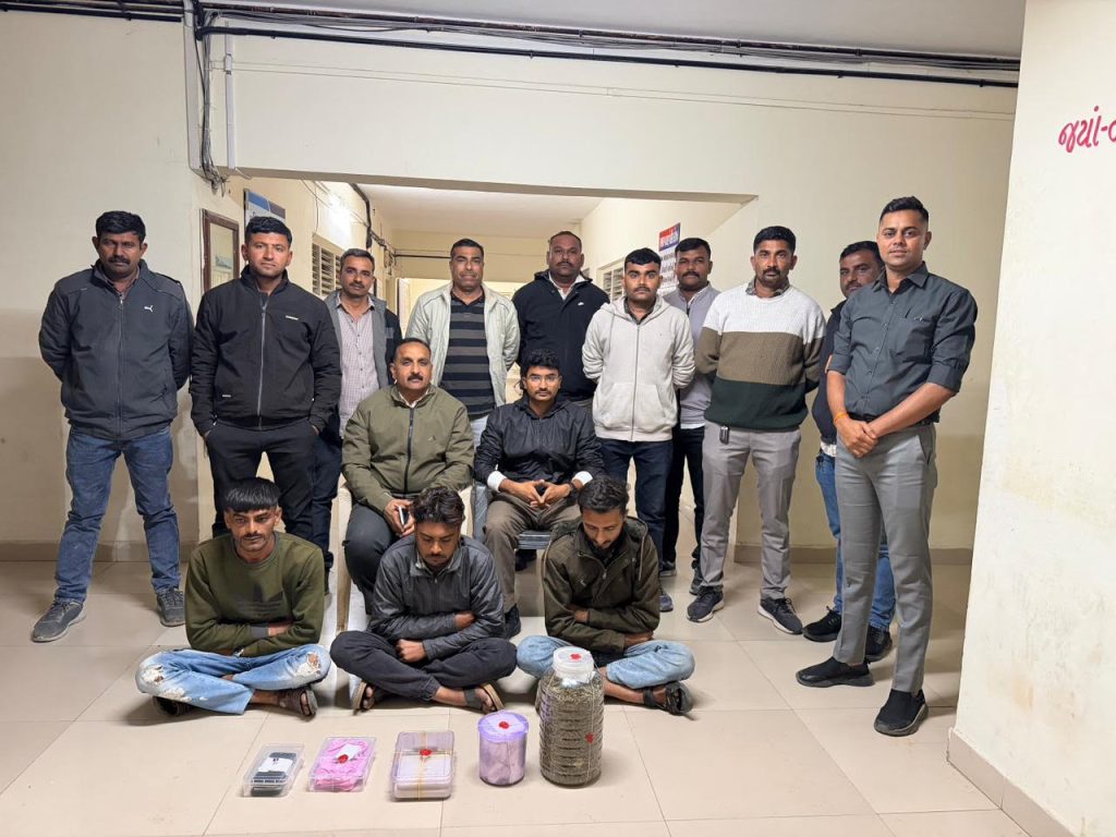 એલ.સી.બી. ગીર સોમનાથના પો.ઇન્સ એસ.વી.રાજપુત તથા એસ.ઓ.જી. ઇન્ચાર્જ પોલીસ ઇન્સ્પેકટર ડી.એમ.કાગડા તથા પો.સબ.ઇન્સ. આર.એચ.સુવા તથા એસ.ઓ.જી. શાખાના પો.સ્ટાફ સાથે પ્રભાસ પાટણ પો.સ્ટે. વિસ્તારમાં પેટ્રોલીંગમા હતા દરમિયાન પો.હેડ.કોન્સ. અનિરુધ્ધસિંહ જયવંતસિંહ તથા પો.કોન્સ. નદીમભાઇ શેરમહમદ નાઓને અંગત અને વિશ્વાસુ બાતમીદારથી મળેલ બાતમી હકીકત આધારે પ્ર.પાટણ ભણશારી વાવ વિસ્તારમાં દરિયાઇ પટ્ટી પાસે આવેલ રજાક હાજીભાઇ ચૌહાણના રહેણાંક મકાને થી ત્રણ આરોપીઓને માદક પદાર્થ ગાંજો (મારીજુઆના/હશીશ)ના જથ્થા સાથે પકડી પાડી પ્ર.પાટણ પો.સ્ટે. ખાતે એન.ડી.પી.એસ. એકટ કલમ 8(સી), 20(2)(બી).29 મુજબ ગુનો રજી.કરવામાં આવેલ છે.