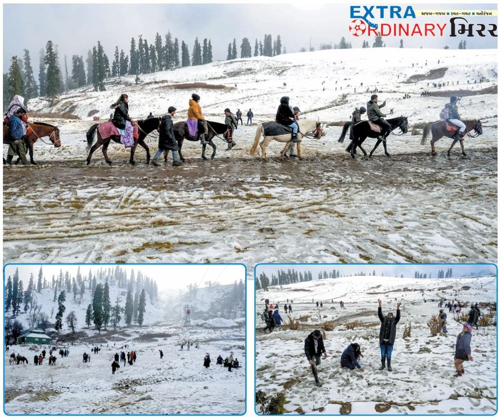 ધરતી પરના સ્વર્ગ કાશ્મીરમાં સફેદ ચાદરનો નજારો માણતા પ્રવાસીઓ