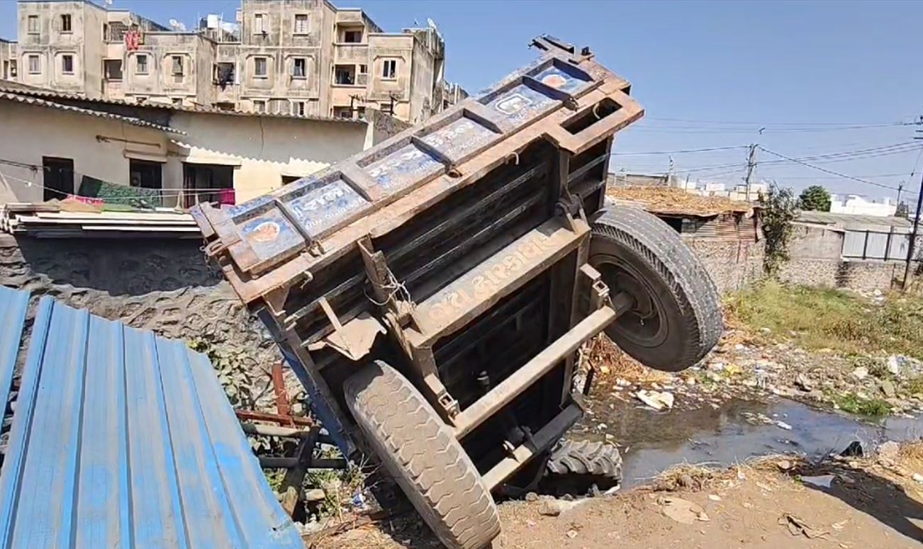 ભોમેશ્ર્વર પ્લોટમાં વોંકળામાં ટ્રેકટર ખાબકયુ