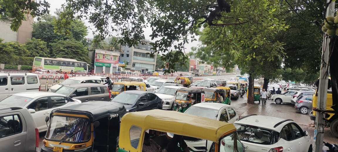 150 ફૂટ રિંગ રોડ ઉપર વરસાદમાં વાહન ચાલકો ફસાયા, રૈયા ચોકથી ઈન્દિરા સર્કલ, નાણાવટી ચોક, કનૈયા ચોક, સાધુવાસવાણી રોડ સુધી વાહનોની લાંબી કતારો લાગી
