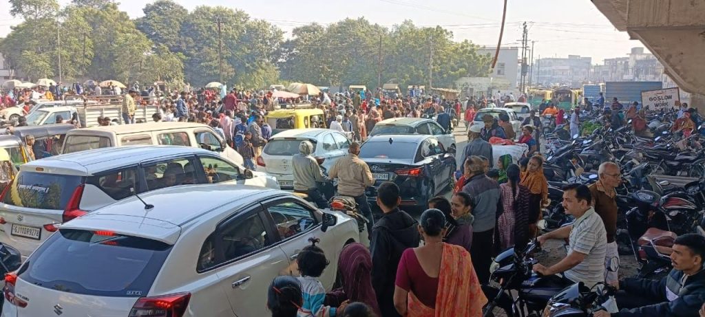 બે દિવસ પહેલાં સાત રસ્તા સર્કલ પાસે ભારે ટ્રાફિક જામ થયો હતો, અને પોલીસે કલાકો સુધી જહેમત ઉઠાવવી પડી હતી. જે પરિસ્થિતિ રવિવારે બપોરે ફરીથી સર્જાઇ હતી. જામનગરમાં રંગમતી નદીના પટમાં રવિવારે ગુજરી બજાર ભરાય છે, અને કેટલાક ફેરિયાઓ છે કે નાગનાથ ગેઇટ ચોકડી સુધી ઊભા રહે છે, દરમિયાન બપોરે 12.30 વાગ્યાના અરસામાં નાગનાથ ગેઇટ ચોકડી પાસે ટ્રાફિકજામના દ્રશ્યો સર્જાયા હતા, અને મોટી સંખ્યામાં વાહનોના થપ્પા લાગી ગયા હતા. તેથી લોકોમાં ભારે દેકારો થઈ ગયો હતો.