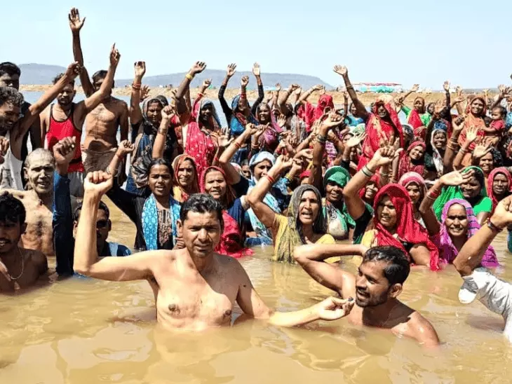 બુંદેલ ખંડમાં નદી બચાવવા આદિવાસી લોકો કલાકો સુધી પાણીમાં ઉતર્યા