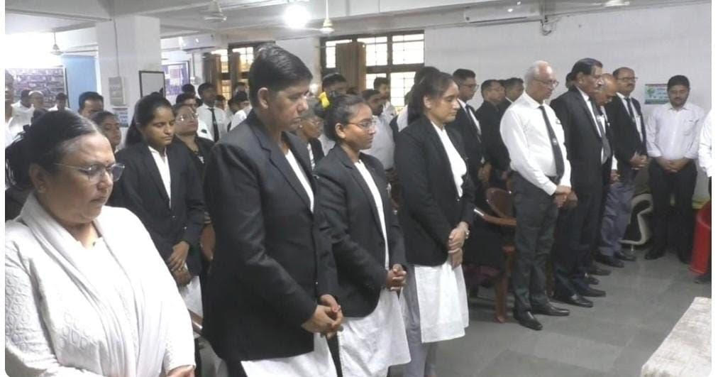 દેશની સૌથી મોટી કરુણ અને આઘાતજનક અમદાવાદની પ્લેન દુર્ઘટનામાં અનેક લોકોના કમકમાટીભર્યા મોત નિપજ્યા હતા. તેમજ આ પ્લેન દુર્ઘટનામાં રાજ્યના પૂર્વ મુખ્યમંત્રી વિજયભાઈ રૂૂપાણીનું પણ નિધન થયું છે. આથો સમગ્ર દેશમાં શોકની કાલીમાં છવાઈ ગઈ છે. તેથી મોરબી બાર એસોસિએશન દ્વારા આ પ્લેન દુર્ઘટનામાં ઊંડો આઘાત વ્યક્ત કરી બે મિનિટ મૌન પાળી મૃતકોને શ્રદ્ધાંજલિ અર્પણ કરી હતી.