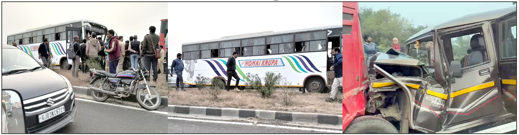 જામનગર થી મોટી ખાવડી તરફ જઈ રહેલી એક ખાનગી લક્ઝરી બસ કે જેના ચાલકે એકાએક બ્રેક મારતાં તેની પાછળ આવી રહેલી બોલેરો કાર ધડાકાભેર બસની સાથે ટકરાઈ ગઈ હતી. ત્યારબાદ પાછળ આવી રહેલી બીજી ખાનગી લક્ઝરી બસ ધડાકાભેર બોલેરો સાથે ટકરાતાં બોલેરોનું પડીકું વળી ગયું હતું.