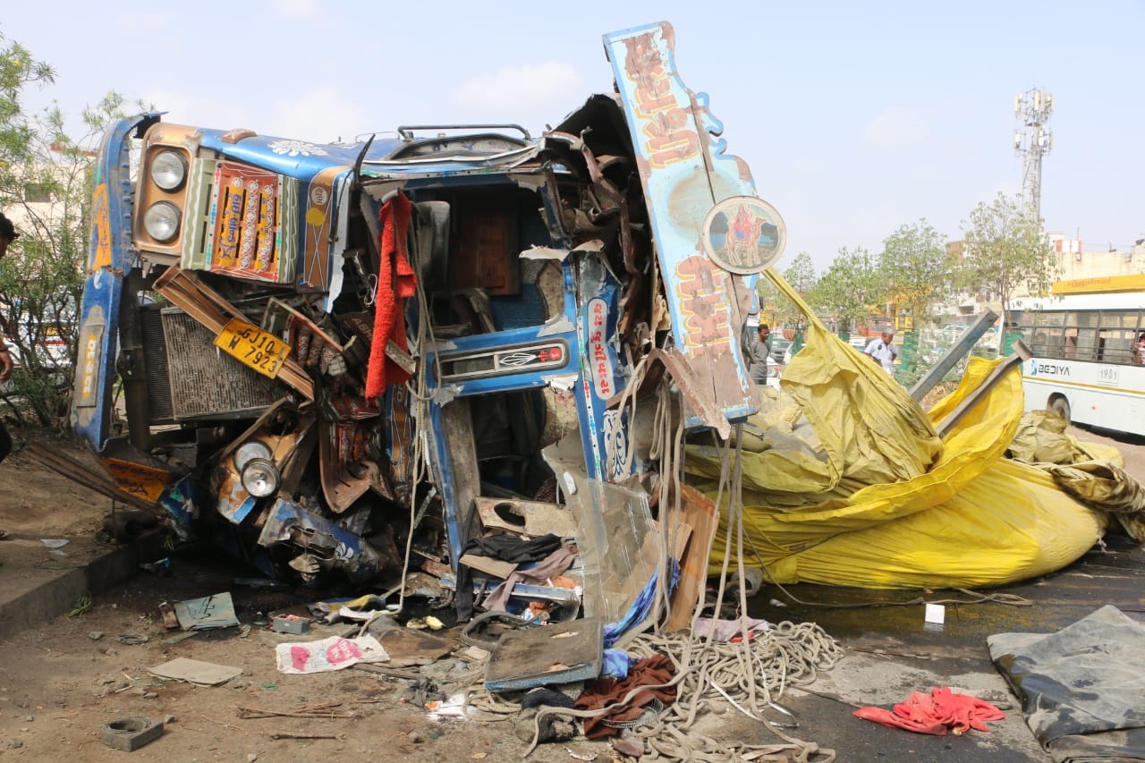ગોંડલ ચોકડી પાસે બે ટ્રક અને બસ વચ્ચે ત્રિપલ અકસ્માત, ટ્રાફિક જામ