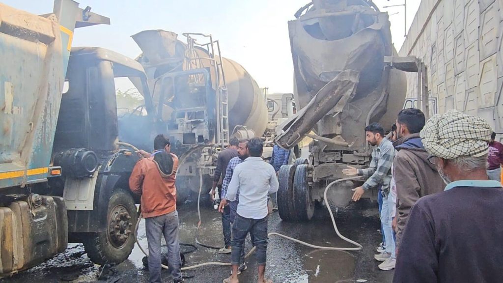 ભાવનગર સોમનાથ હાઇવે પર ટ્રકમાં આગ લાગતા હાઇવે બંધ કરવાની ફરજ પડી જેમાં જાણવા મળતી વિગત મુજબ ભાવનગર સોમનાથ નેશનલ હાઈવે ભેરાઈ ચોકડી નજીક રેલવે ફાટક પાસે એક ટ્રકમાં અચાનક આગ લાગતા આ હાઈવે બંધ કરવાની ફરજ પડેલી આગ લાગવાની ઘટનાથી સ્થાનિક પોલીસ દ્વારા અનિશ્ચિય બનાવ ન બને તે માટે સ્થાનિક પોલીસ દ્વારા આ રસ્તો તાત્કાલિક બંધ કરવામાં આવ્યો. ત્યારબાદ રાજુલા ફાયર વિભાગને જાણ કરવામાં આવી ફાયર વિભાગ આવે તે પહેલા રોડનું કામ ચાલુ હતું તે લોકો દ્વારા આ આગને કાબુ માં લેવાનો પ્રયાસ કરવામાં આવેલો પરંતુ ધીમે ધીમે આગ વધતી હોવાથી આ આગ કાબુમાં આવેલ નહીં અને રાજુલા ફાયર વિભાગને જાણ કરેલ તે ફાઈર ઘટના સ્થળે આવી ગયેલું અને આ આગ કાબુમાં લેવામાં સફળતા મળેલી આગ કેવી રીતે લાગી તે જાણવા મળેલ નથી જોકે આ આગ કાબુ માં આવે ત્યાં સુધી એટલે કે અંદાજિત 25 મિનિટ સુધી આ હાઈવે બંધ રહ્યાના સમાચાર મળી રહ્યા છે સ્થાનિક પોલીસ દ્વારા આ આગ કાબુ માં આવતા ટ્રાફિકને તાત્કાલિક ક્લિયર કરવા માટેની કામગીરી શરૂૂ કરવામાં આવેલી ભાવનગર સોમનાથ નેશનલ હાઈવે નું રોડનું કામ કરતા કોન્ટ્રાક્ટર નો ટ્રક હોવાનું જાણવા મળેલ છે સ્થાનિક પોલીસની અને લોકોના સાથ અને સહકારથી આ ઘટનામાં ટ્રકની નુકશાની સિવાય કોઈ બીજું નુકસાન થવા પામેલ નથી