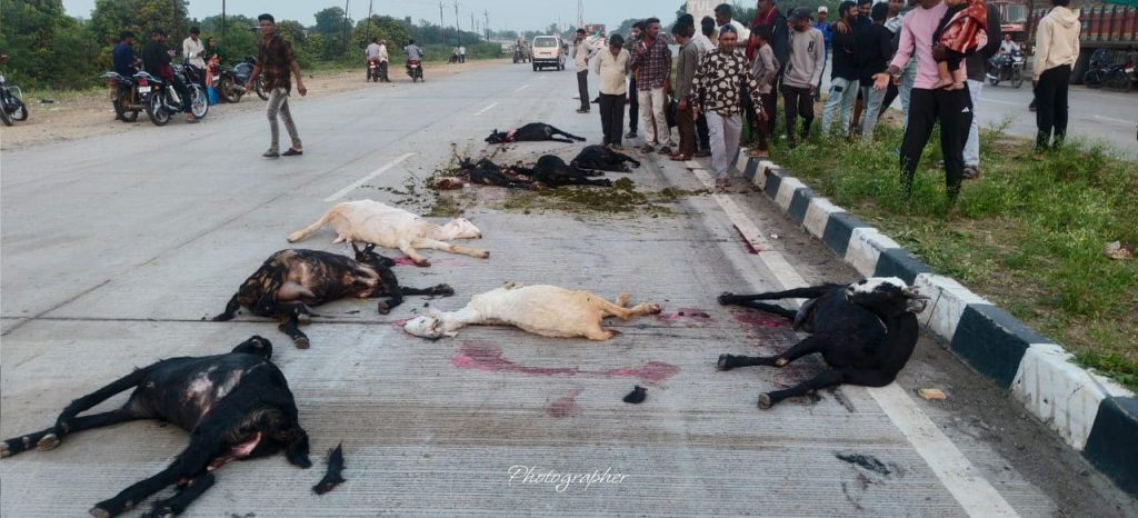 ઘટન સ્થળે 12 જેટલાં ધેટાં બકરા ના મોત નીપજ્યા હતા અને મૂંગા પશુ ના લોહી થી રસ્તો રંગાઈ ગયો હતો ગાંગડા નજીક થયેલ આ અકસ્માત થતા લોકો ના ટોળા ઉમટી પડ્યા હતા અને તાત્કાલિક ટ્રક ચાલક ને ઝડપી સનખડા આઉટ પોસ્ટ પોલીસ સ્ટેશને લઈ ગયેલ મહત્વની વાત એ છે ભાવનગર હાઈ વે પર 24 કલાક સતત વાહનો ની અવર જવર રહેછે ત્યારે ઓવર સ્પીડ આવતા વાહનો અનેક વખત અકસ્માત સર્જતા હોય તેમ હજુ બે દિવસ પહેલા એક બોલેરો ચાલકે એક ભેંસ ને હડફેટે લેતા ભેંસ નું મોત નીપજ્યું હતું આ વિસ્તાર માં બનતી વારંવાર અકસ્માત ની ઘટના અટકાવવા માટે પોલીસે પણ સતર્ક રહેવાની જરૂૂર છે આ વિસ્તાર માં આઉટ પોસ્ટ પોલીસ સ્ટેશન હોવા છતાં પણ અકસ્માત ની ઘટના વધી રહી છે ત્યારે કોઈ માનવ જીવન નો ભોગ લેવાય તે પહેલાં આ વિસ્તારમાં બેરિટેક મૂકવામાં આવે જેથી વાહનો ની સ્પીડ પર ક્ધટ્રોલ રહે તેવી માંગણી ઉઠવા પામી છે