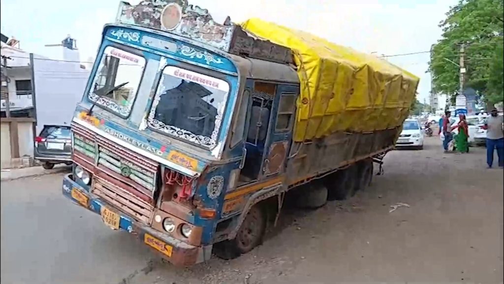 કોર્પોરેશને ખોદેલા ખાડામાં ટ્રક ફસાઇ