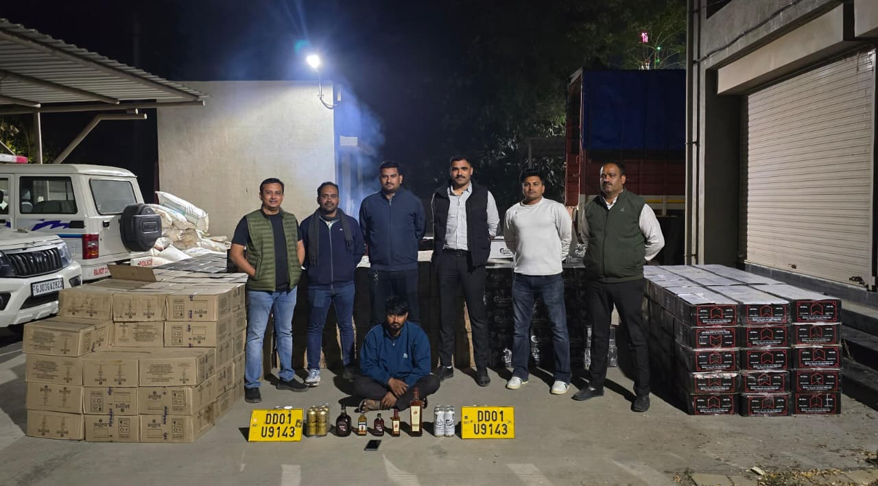 પોલીસ કમિશ્નર બ્રજેશકુમાર ઝા,અધિક પોલીસ કમિશ્નર મહેન્દ્ર બગરીયા,ડીસીપી (ક્રાઇમ) જગદીશ બાંગરવા,એસીપી (ક્રાઇમ) ભરત બી.બસીયા દ્વારા બુટલેગર ઉપર વોચ ગોઠવી કાર્યવાહી કરવા સુચના આપી હોય ક્રાઈમ બ્રાંચના પીએસઆઈ વી.ડી.ડોડીયાની ટીમના દિલીપભાઇ બોરીયા,રાજેશભાઇ જળુ અને વિશાલભાઇ દવેને મળેલ ચોક્કસ હકીકત આધારે રાજકોટ-અમદાવાદ હાઇવે કુવાડવા ગામ પાસે આવેલ ગુજરાત ગેસના પંપ નજીક રોડ ઉપરથી આઇસર ટ્રક રજી.નં. જીજે-23-એડબ્લ્યુ 5219 ને અટકાવી તલાશી લેતા આ નંબર પ્લેટ નકલી હોવાનું અને ટ્રકના સાચા રજી.નં. ડીડી010 9143 ના હોય જે આઇસર ટ્રકમાંથી 53 લાખનો દમણથી રાજકોટ ઘુસાડેલ 13499 બોટલ દારૂૂ-બીયરનો જથ્થો મળી આવ્યો હતો.