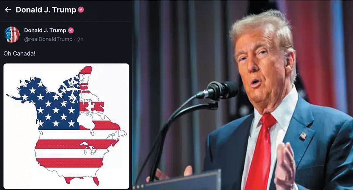 અમેરિકાના નવા ચૂંટાયેલા રાષ્ટ્રપતિ ડોનાલ્ડ ટ્રમ્પ હાલમાં હાયપરએક્ટિવ મોડમાં છે. તેમણે શપથ લેતા પહેલા જ પોતાના એજન્ડા પર કામ કરવાનું શરૂૂ કરી દીધું છે. તેઓ કેનેડાને અમેરિકાનું 51મું રાજ્ય બનાવવા માટે મક્કમ છે. પ્રેસ કોન્ફરન્સમાં કેનેડાને અમેરિકામાં ભેળવી દેવા આર્થિક તાકાતનો ઉપયોગ કરવાની ધમકી પછી ટ્રમ્પે પોતાના સોશિયલ મીડિયા એકાઉન્ટ પર ઓહ કેનેડા લખવા સાથે બે નકશા શેર કર્યા છે. આમાંના એક નકશામાં તેમણે કેનેડાને અમેરિકા બતાવ્યું છે, જ્યારે બીજા નકશામાં તેમણે કેનેડાને લઈને પોતાનો ઈરાદો વ્યક્ત કર્યો છે, જેને લઈને હવે વિવાદ શરૂૂ થઈ ગયો છે અને કેનેડાના નેતાઓએ ટ્રમ્પને બેફામ જવાબો આપવાનું શરૂૂ કર્યું છે.