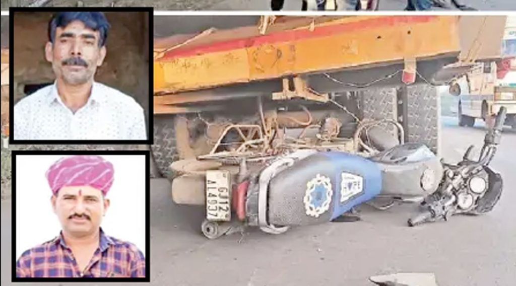 આ બાબતે જાણવા મળતી વિગતો મુજબ ગઈકાલે રાત્રે સાડા ત્રણ વાગ્યાના અરસામાં બનાવ બન્યો હતો. ઘડુલીથી અડધા કિલોમીટર દૂર દયાપર જતા હાઈવે રોડ પર ઘટના બની હતી. જુણાચાયના જાડેજા હઠુભા અને દયાપરના પ્રફુલ્લભાઈ જાદવ બાઈક પર ઘડુલી જતા હતા, ત્યારે હાઈવે પર ઉભેલા પવનચક્કીના લાંબા ટ્રેઈલરમાં પાછળના ભાગે બાઈક ઘુસી જતાં ગંભીર ઈજાઓના કારણે બંનેના મોત થયા હતા. દેહને દયાપર સામૂહિક આરોગ્ય કેન્દ્ર ખાતે લાવવામાં આવ્યા હતા.