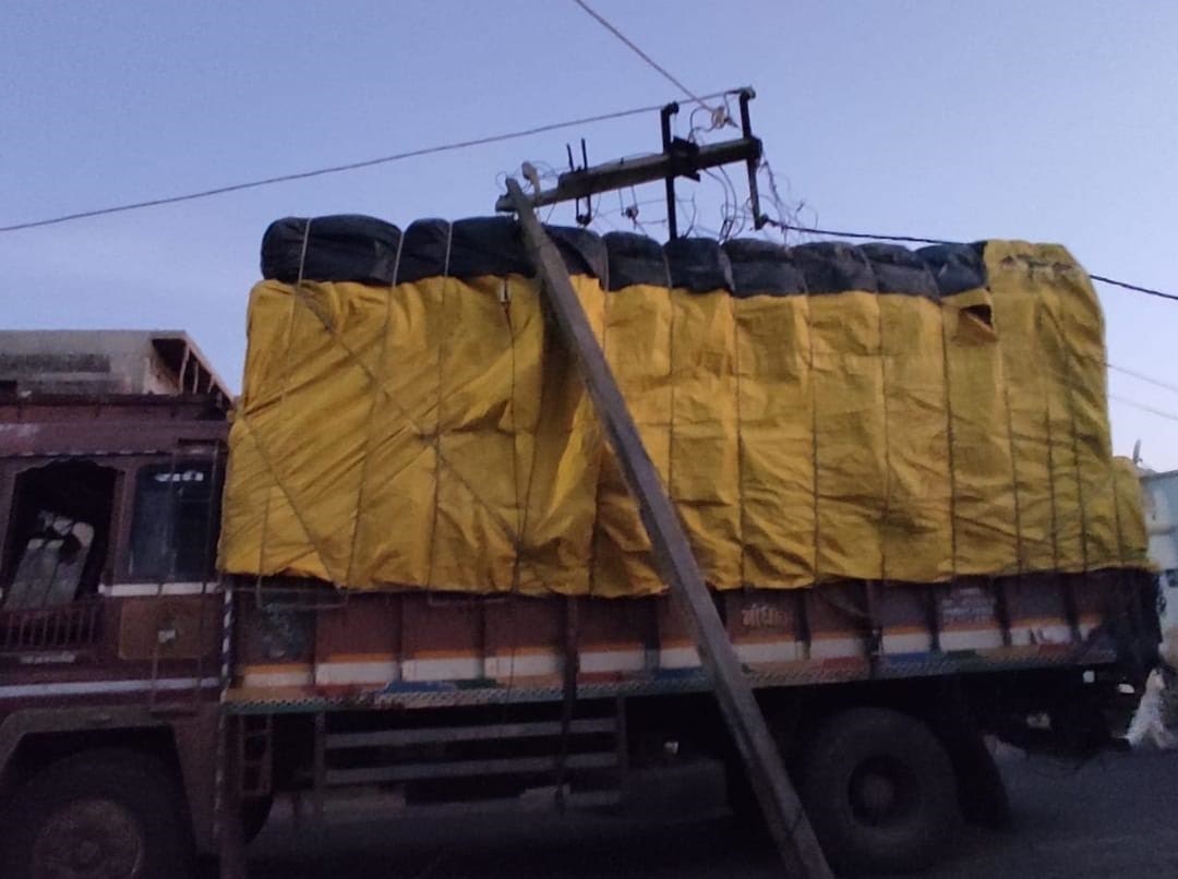 જેતપુર તરફ થી હાઈટ થી ઉપર ભરેલા ટ્રક અમરેલી તરફ જતા હતા ત્યારે વડિયાના આંબેડકર નગર પાસે બસ સામે આ મોટી દુર્ઘટના બનતા રહી ગઈ. જાણવા મળતી વિગતો મુજબ અમરેલી તરફ જતા ટ્રક ટ્રેકથી ઉંચે હાઈટમાં કોઈ વસ્તુ ભરેલી હતી સામે બસ આવતા ઓછા પહોળા રસ્તામાં ટ્રક સાઈડ માં લેવા જતા ચાલુ વીજ પોલ નો ભાગ ટ્રક સાથે ભરાયો હતો.