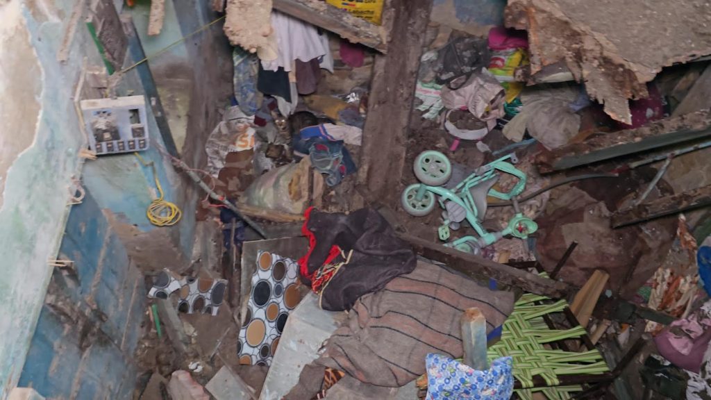 જામનગરમાં કાલાવડ નાકા બહાર રંગૂન વાલા હોસ્પિટલ નજીક મોટા પીર ચોક વિસ્તારમાં એક જુનવાણી મકાન, કે જેમાં રાત્રિના પોણા ચાર વાગ્યા આસપાસ ઉપરનો છતનો હિસ્સો ધડાકાભેર ધસી પડતાં ભારે અફડા તફડી સર્જાઇ હતી, અને મકાનના નીચેના ભાગમાં રહેતી બે વ્યક્તિ કાટમાળમાં દબાઈ હતી. જે બંનેને બહાર કાઢી લઈ, સારવારમાં પહોંચાડ્યા હતા, ઉપરાંત ઉપરના માળે રહેતા બે બાળકો અને એક મહિલાને સહી સલામત રીતે રેસ્ક્યુ કરી લેવાયા હતા. આ દુર્ઘટના ને કારણે આસપાસના લોકોનું ટોળું એકત્ર થઈ ગયું હતું. પોલીસ તંત્ર એ પણ આવી જઇ સમગ્ર વિસ્તારને કોર્ડન કર્યો હતો. ઉપરાંત એસ્ટેટ શાખાની ટીમ દ્વારા જર્જરિત મકાનનો અન્ય હિસ્સો તોડી પાડવાની કાર્યવાહી ચાલી રહી છે.