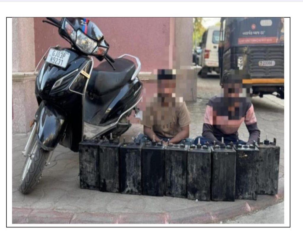 પકડાયેલ આરોપિતમાં શનિ પરસોતમભાઇ ગોધાણી ઉ.વ 23 (રહે મોરબી રોડ જકાતનાકા સ્મશાન પાસે ભરતભાઇ પટેલની વાડીમાં રાજકોટ મુળ વતન ઘીયાવડ તા.વાંકાનેર જી મોરબી) અને મહેશ વલ્લભભાઇ સોલંકી (ઉ.વ 40 રહે મોરબી રોડ સિલ્વર પાર્ક શેરી નં 3 વલ્લભભાઇ દેવીપુજકના મકાનમાં ભાડેથી રાજકોટ) પાસેથી લખેલ કાળા કલરની બેટરીઓ રૂૂ 13500ની કીમતની 9 બેટરી તેમજ હોન્ડા સહીત કુલ રૂૂ. 68,500 નો મુદામાલ કબ્જે કરેલ છે.