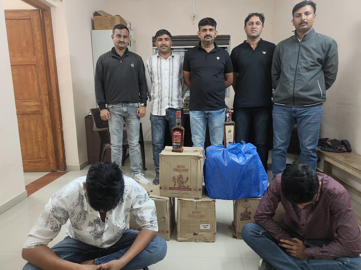 અહીં ગાયત્રીનગરમાં રહેતા સત્યરાજસિંહ જામભા જાડેજા (ઉ.વ. 25) અને ચુનારાવાસમાં રહેતા પ્રવીણ ઉર્ફે પિન્ટુ ભીખુભાઈ ચોપડા (ઉ.વ. 29) નામના બે શખ્સો દ્વારા વેંચાણ અર્થે ભાગીદારીમાં મંગાવવામાં આવેલી વિદેશી દારૂૂની કુલ 60 બોટલ સાથે ઝડપી લેવામાં આવ્યા હતા. આ દરોડામાં પોલીસે કુલ રૂૂપિયા 43,872 ની કિંમતના દારૂૂ તેમજ રૂૂ. 10,000 ની કિંમતના એક મોબાઈલ ફોન મળી કુલ રૂૂપિયા 53,872 નો મુદ્દામાલ કબજે કર્યો હતો.