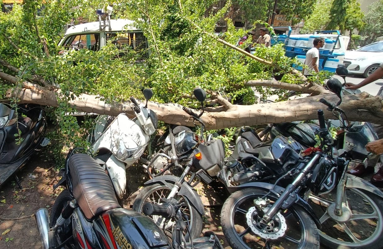 મળતી માહિતી મુજબ બપોરે બારેક વાગ્યે આંબલીનુ આ તોતીંગ વૃક્ષ અચાનક તુટી રોડ ઉપર ખાબકયુ હતુ પરિણામે ઝાડના છાંયડે પાર્ક કરેલા 8 જેટલા ટુ-વ્હિલર તથા પોલીસની પીસીઆર વાન દબાઇ ગયા હતા.