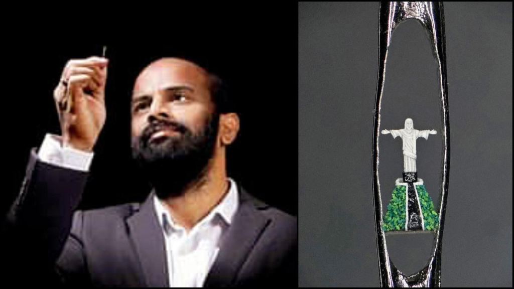 હૈદરાબાદના વારંગલના માઇક્રો-આર્ટિસ્ટ અજયકુમાર મત્તેવાડાની કળા તો હવે ઇન્ટરનેશનલ લેવલ પર પ્રશંસા પામી ચૂકી છે. જોકે તાજેતરમાં અજયકુમારે એક નવું સર્જન કરીને લોકોને ચકિત કરી દીધા છે. બ્રાઝિલના રિયો ડી જાનેરોમાં આવેલું દુનિયાની સાત અજાયબીઓમાં સ્થાન ધરાવતું ક્રાઇસ્ટ ધ રિડીમરની પ્રતિમા અજયકુમારે સોયના કાણાની અંદર કંડારી છે. આ મૂળ પ્રતિમા લગભગ 98 ફુટ ઊંચી છે, પરંતુ માઇક્રો આર્ટિસ્ટે બનાવેલી મૂર્તિ સોયના કાણામાં બનાવેલી છે જેની લંબાઈ માત્ર 1.1 મિલીમીટર છે.