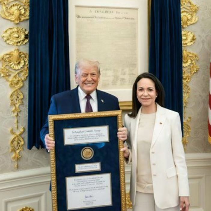 વેનેઝુએલાના વિપક્ષી નેતા અને નોબેલ પુરસ્કાર વિજેતા મારિયા કોરિના મચાડો અને યુએસ પ્રમુખ ડોનાલ્ડ ટ્રમ્પ વચ્ચે મુલાકાત થઇ હતી. વેનેઝુએલામાં તાજેતરમાં થઇ રહેલી કડક કાર્યવાહી બાદ આ બેઠક પર ભારે નજર રાખવામાં આવી હતી. બેઠક બાદ મચાડોએ એક મહત્વપૂર્ણ દાવો કર્યો. તેમણે કહ્યું કે તેમણે બેઠક દરમિયાન ટ્રમ્પને તેમનો નોબેલ શાંતિ પુરસ્કાર મેડલ ભેટમાં આપ્યો હતો, જોકે તેમણે સ્પષ્ટ કર્યું નથી કે તેમણે ખરેખર તે સ્વીકાર્યો છે કે નહીં. આ ગિફ્ટ ડિપ્લોમસીએ વોશિંગ્ટનથી લઈને કરાકસ સુધી નવી રાજકીય અટકળોને જન્મ આપ્યો છે.