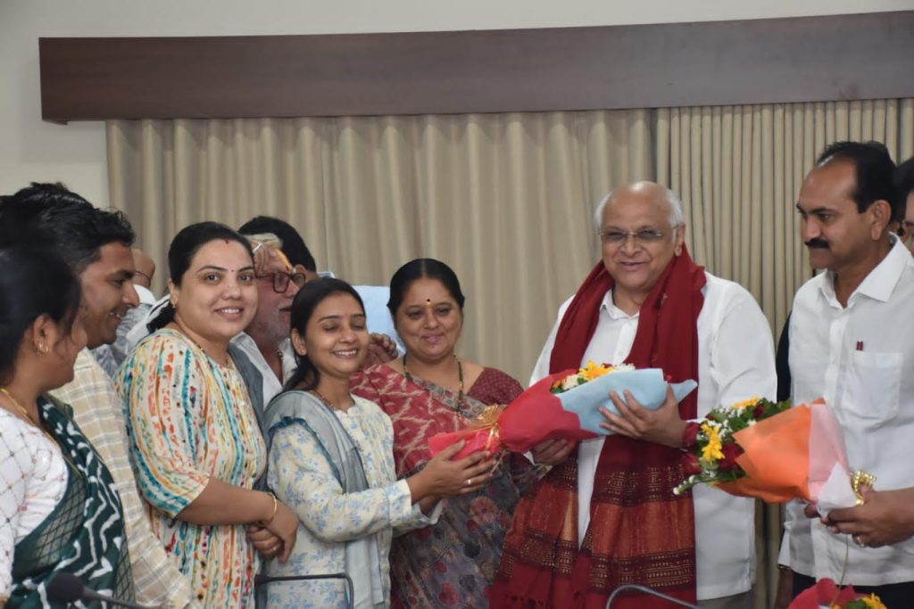 આ તકે દિક્ષિતાબેન અઢિયા દ્વારા વેરાવળ નમસ્તે થી શંખસર્કલ સુધી બનવા જનાર ફોર લેન રોડના કામ માટે વધારાની રકમ માટે વિશેષ માંગણીને મુખ્યમંત્રી સ્વીકારી ફાળવી આપવા ખાત્રી આપી હતી તેમજ શહેરને સ્વચ્છ બનાવવાવ વધુ માં વધુ ધ્યાન આપવવા ટકોર કરેલ હતી. આ મીટિંગમાં નગરસેવક બાદલભાઈ હુંબલ, પ્રતિનિધિ જયદેવભાઈ જાની, અંકુરભાઈ અઢિયા, કિશનભાઈ જેઠવા, જયેશભાઈ કાળુભાઈ સહિતના આગેવાનો દ્વારા મુખ્યમંત્રી ભુપેન્દ્રભાઈ ને પુષ્પગુચ્છ તેમજ શાલઓઢાળી સન્માનીત કરેલ હોવાનું એક યાદીમાં જણાવેલ છે.