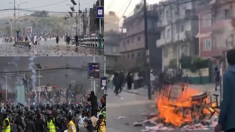 સ્થાનિક મીડિયા અનુસાર, અથડામણ ત્યારે થઈ જ્યારે દેખાવકારોએ સુરક્ષા કોર્ડન તોડવાનો પ્રયાસ કર્યો અને પોલીસ પર પથ્થરમારો કર્યો. જેના જવાબમાં પોલીસે ટોળાને વિખેરવા માટે ટીયર ગેસ છોડ્યો હતો. આ દરમિયાન પ્રદર્શનકારીઓએ એક બિઝનેસ કોમ્પ્લેક્સ, એક શોપિંગ મોલ, એક રાજકીય પક્ષના મુખ્યાલય અને એક મીડિયા હાઉસ બિલ્ડિંગને આગ ચાંપી દીધી હતી, જેમાં 12થી વધુ પોલીસકર્મીઓ ઘાયલ થયા હતા. રાષ્ટ્રીય પ્રજાતંત્ર પાર્ટી (RPP) સહિત રાજાશાહી તરફી અન્ય ઘણા જૂથોએ પણ પ્રદર્શનમાં ભાગ લીધો હતો.
