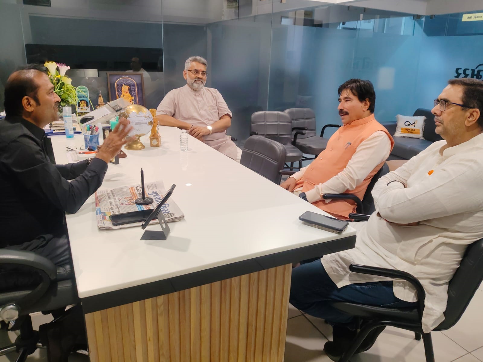 ચૂંટણી ટાણે ભાજપમાં પ્રવર્તતા અસંતોષ અંગે તેમણે જણાવ્યું કે, ભાજપમાં ટિકીટ આપવાનું કામ પુરૂ થાય પછી કાર્યકર્તા ગમો-અણગમો છોડીને ભાજપને જીતાડવા કામે લાગી જતો હોય છે. આ વખતે પણ એવું જ છે. કાર્યકરને હવે બધુ ભુલીને ચૂંટણીના કામે લાગી ગયા છે. ભાજપના પ્રદેશ મહામંત્રી અનિરૂધ્ધભાઈ દવે સાથે પ્રવકતા રાજુભાઈ ધ્રુવ અને શહેર ભાજપ પ્રમુખ ડો.માધવ દવે પણ ‘ગુજરાત મિરર’ની મુલાકાતે આવ્યા હતાં અને ચૂંટણીમાં ભાજપની વ્યુહરચના અંગે વાત કરી હતી.