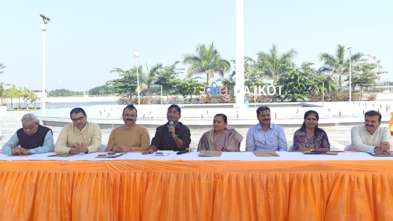 ભારતીય વાયુ સેના અને રાજકોટ મહાનગરપાલિકા દ્વારા તા.6 અને તા.7 રોજ સવારે 10:00 અટલ સરોવર આસપાસના સ્માર્ટ સીટીના વિસ્તાર (અટલ સરોવર ફરતે) ના આકાશમાં અદભુત સૂર્યકિરણ એર-શો, એરફોર્સ બેન્ડનું પરફોર્મન્સ અને શસ્ત્ર પ્રદર્શન યોજાશે. આ ઉપરાંત એક દિવસ અગાઉ એટલે કે તા.06-12-2025ને શનિવારના રોજ સવારે 10:00 કલાકે સૂર્યકિરણ એર-શોનું ફૂલ ડ્રેસ રિહર્સલ પણ યોજાનાર છે. આ આયોજન અનુસંધાને આજે રોજ અટલ સરોવર ખાતે મેયર નયનાબેન પેઢડીયાના અધ્યક્ષ સ્થાને યોજાયેલ પત્રકાર પરિષદમાં માહિતી આપવામાં આવી હતી. આ પ્રસંગે શહેર ભાજપ પ્રમુખ ડો.માધવભાઈ દવે, ડેપ્યુટી મેયર નરેન્દ્રસિંહ જાડેજા, સ્ટેન્ડીંગ કમીટી ચેરમેન જયમીનભાઈ ઠાકર, મ્યુનિસિપલ કમિશનર તુષાર સુમેરા, શાસક પક્ષ નેતા લીલુબેન જાદવ, શાસક પક્ષ દંડક મનીષભાઈ રાડીયા અને સમાજ કલ્યાણ સમિતિ ચેરમેન સુરેન્દ્રસિંહ વાળા ઉપસ્થિત રહ્યા હતા. સ્ટેન્ડીંગ કમીટી ચેરમેન જયમીનભાઈ ઠાકરે ઉપસ્થિત સૌને આવકારી પત્રકાર પરિષદનો શુભારંભ કરાવ્યો હતો.