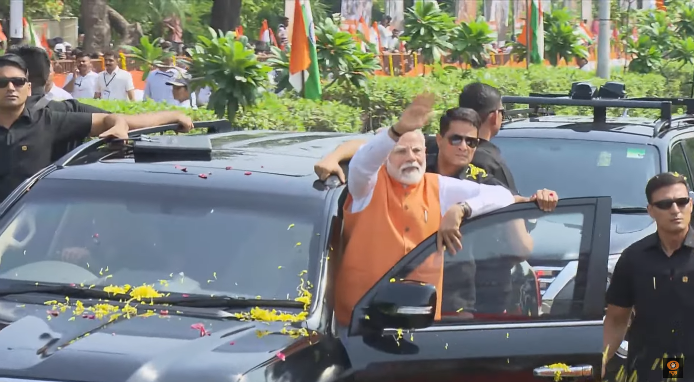 આજે સવારે વડાપ્રધાનનું વડોદરા ખાતે આગમન થયુ હતુ અને એરપોર્ટથી મિલન પાર્ટી પ્લોટ સૂધી ભવ્ય રોડ શો યોજયો હતો. આ પ્રસંગે રોડની બન્ને તરફ લોકોએ ઉભા રહી ‘ભારત માતા કી જય’, અને ‘વંદે માતરમ’ નાં નારા લગાવી વડાપ્રધાનનું અભિવાદન કર્યુ હતુ.