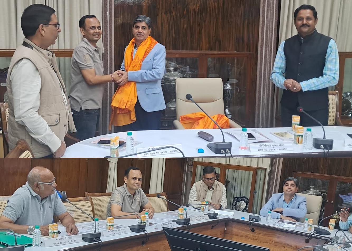 રાજકોટ ચેમ્બર ઓફ કોમર્સ એન્ડ ઈન્ડસ્ટ્રીના ઉપપ્રમુખ પાર્થભાઈ ગણાત્રા દ્વારા રાજકોટ વેસ્ટર્ન રેલ્વેની ડિવીઝનલ રેલ્વે યુઝર્સ ક્ધસલ્ટેટીવ કમિટી (DRUCC) નૌ તા.24-12-2025 ના રોજ મળેલ મિટીંગમાં ઉપસ્થિત રહી રાજકોટ-સૌરાષ્ટ્રના મુસાફ રોને વધુ સારી રેલ્વે સુવિધા મળી રહે તે માટે રાજકોટ વેર્સ્ટન રેલ્વે ડિઆરએમશ્રી ગી રી રાજ કુમાર મીના તથા DRUCCસેક્રેટરી અને સનીયર ડિસીએમ સુનિલકુમાર મિનાને રેલ્વેને લગતા વિવિધ પ્રશ્નો-સુચનો રજુ કરવામાં આવેલ.