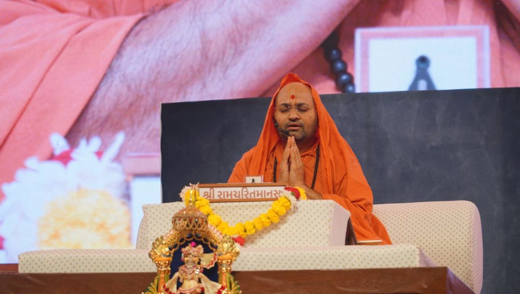 રેસકોર્સ ખાતે ચાલી રહેલ હનુમાન ચાલીસા યુવા કથાના બીજા દિવસ એટલે કે, રવિવારના દિવસે ભક્તોનું મહેરામણ ઉમટયું હતું. બીજા દિવસની કથા શરૂૂ કરતા પહેલા સ્વામી હરિપ્રકાશદાસજીએ વિજયભાઈનું નામ લઈને કહ્યું હતું કે, સમગ્ર ભારતને છાયો આપવાનું કામ રાજકોટ કરે છે. કથાના ઉલ્લેખનીય છે કે, કથાના પ્રારંભ દિવસે રેસકોર્સ ગ્રાઉન્ડ ભગવા રંગે રંગાયું ગયું હતું. પહેલા દિવસે શહેરના સંતો મહંતો સહિત મોટી સંખ્યામાં લોકો ઉપસ્થિત રહ્યા હતા. જેમાં સ્વામી પરમાત્માનંજી, રાધા રમણ સ્વામી, વિવેક સ્વામી તેમજ રાજકોટના નામકિત ઉદ્યોગપતિઓ હાજર રહ્યા હતા. યુવા કથાના પ્રથમ દિવસે શનિવારે હજારોની સંખ્યામાં ભક્તો કથા સાંભળવા આવ્યા હતા અને 200 જેટલી બોટલ બ્લડ ડોનેશન કરાયું હતું. સ્વામી હરિપ્રકાશદાસજીએ સદ્ભાવના ટ્રસ્ટની સેવાકીય પ્રવૃત્તિઓની પ્રશંસા કરી હતી. ગઈકાલે 32000 જેટલી પ્રસાદ કીટનું વિતરણ થયું હતું. સ્વામીજીએ જણાવ્યું હતું કે હનુમાનજીએ ભારત અને શ્રીલંકાને જોડવાનું કામ કર્યું, જે જોડે એ હનુમાન છે.