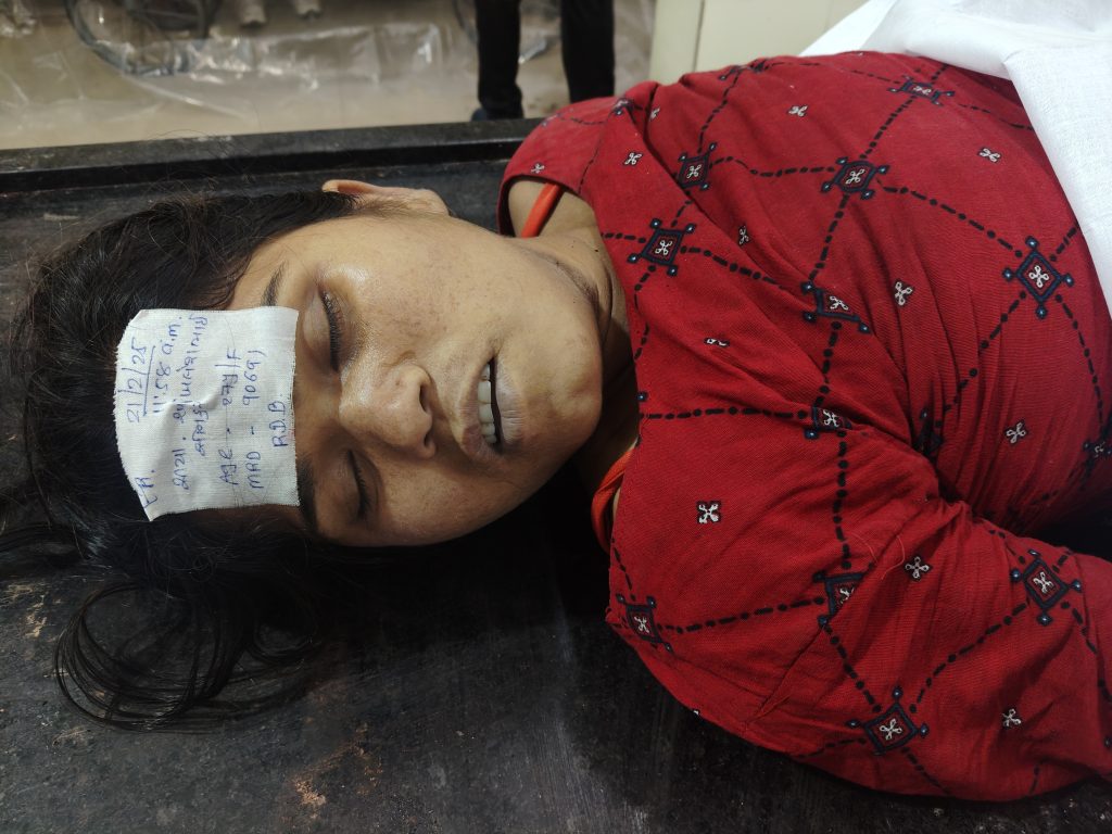 શહેરીન ભાગોળે ભાવનગર હાઇ-વે પર મહીકા ગામે રહેતી પરપ્રાંતીય પરિણીતાએ ગળાફાંસો ખાઇ આપઘાત કરી લીધો હતો. પતિએ દિવ્યાંગ પુત્રીનું ધ્યાન રાખવાનું કહેતા લાગી આવતા પત્નીએ આ પગલુ ભરી લીધાનું જાણવા મળ્યું છે.જાણવા મળતી વિગત મુજબ મુળ ઉતરપ્રદેશના વતની અને હાલ મહીકા ગામના પાટીયા પાસે આવેલા શક્તિ મારબલની ઓરડીમાં રહેતી સીયાબેન અખિલેશ સોનકર (ઉ.વ.27) નામની પરિણીતાએ આજે સવારે પોતાના રૂમમાં સાડી વડે ગળાફાંસો ખાઇ આપઘાત કરી લીધો હતો.