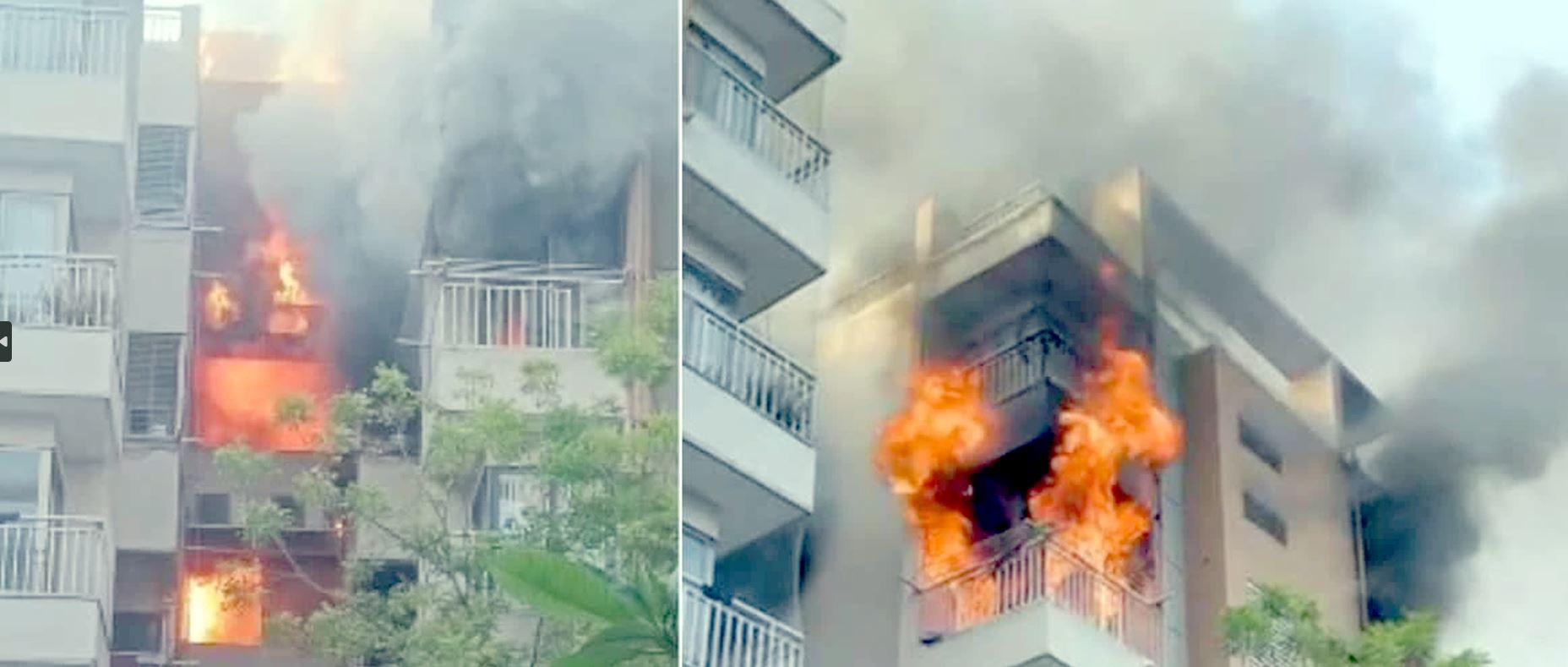ઓર્ચિડ ફ્લેટમાં આગ લાગતાં એક મહિલાએ પોતાનો જીવ બચાવવા પાંચમા માળેથી છલાંગ લગાવી હતી . આ વીડિયો વાયરલ થતા આગની જેમ વીડિયો ફેલાયો છે.