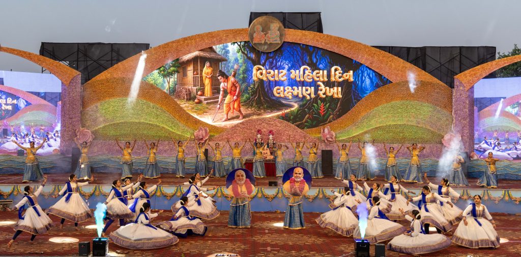 તા. 17/04/2026, શુક્રવારના રોજ માનવ ઉત્કર્ષ મહોત્સવ અંતર્ગત વિરાટ મહિલા દિન નિમિત્તે લક્ષ્મણ રેખા વિષયક વિશેષ કાર્યક્રમ ભવ્યતા અને આધ્યાત્મિકતા સાથે યોજાયો હતો. આ કાર્યક્રમ માત્ર એક સાંસ્કૃતિક પ્રસંગ નહોતો, પરંતુ BAPS સંસ્થાની નારીશક્તિ, સંસ્કાર અને સંગઠન ક્ષમતાનો જીવંત પ્રયોગ બની રહ્યો હતો. સમગ્ર આયોજનની વિશેષતા એ રહી કે શરૂૂઆતથી અંત સુધી દરેક જવાબદારી આયોજન, સંચાલન, પ્રસ્તુતિ, ટેક્નિકલ વ્યવસ્થા અને સ્વાગત સંપૂર્ણપણે બાલિકા, યુવતી અને મહિલાઓ દ્વારા જ સંભાળવામાં આવી, જે નારી આત્મનિર્ભરતાનું પ્રેરણાદાયી દૃશ્ય સર્જતું હતું.