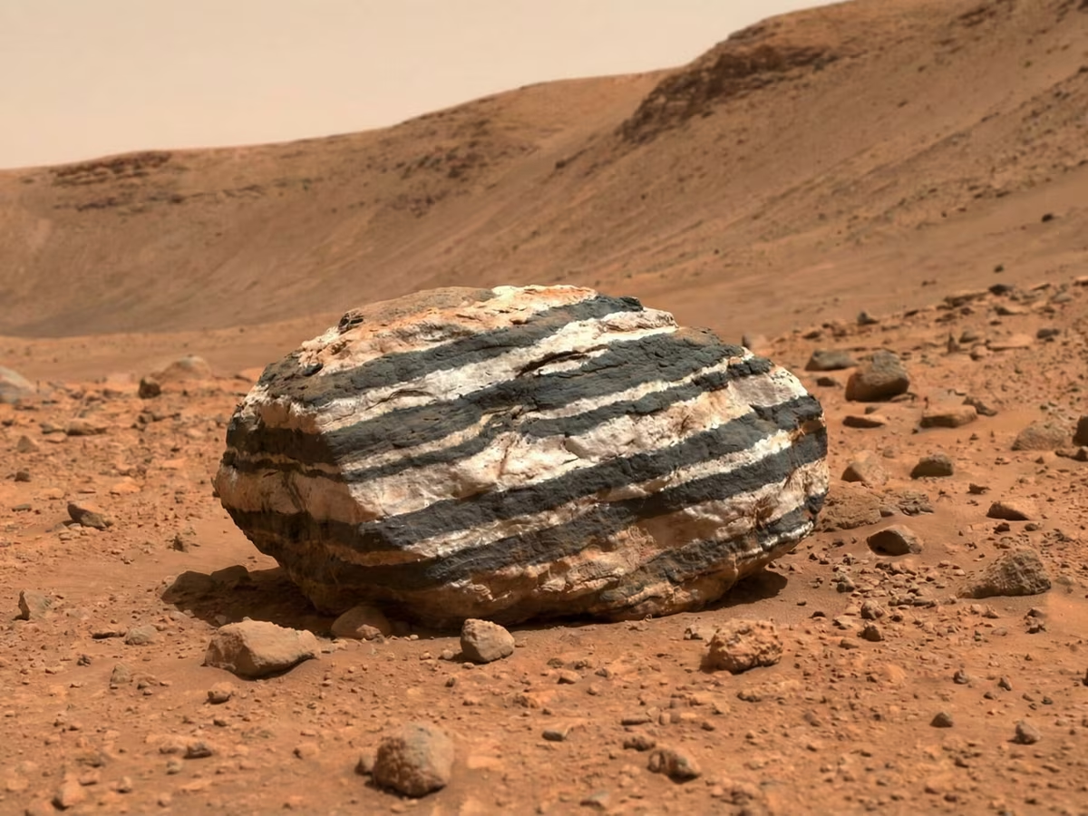 મંગળ હંમેશા માનવો અને વૈજ્ઞાનિકો માટે એક મોટો કોયડો રહ્યો છે. તાજેતરમાં, નાસાના પર્સિવરન્સ રોવરે લાલ ગ્રહ પરથી એક તસવીર મોકલી છે જેણે વિશ્વભરના વૈજ્ઞાનિકોનું ધ્યાન ખેંચ્યું છે. ધૂળવાળી લાલ-નારંગી માટી અને ખડકો વચ્ચે, ઝેબ્રા જેવા કાળા અને સફેદ પટ્ટાઓવાળો એક પથ્થર જોવા મળ્યો છે. ઇન્ટરનેટ પર તેને ’ઝેબ્રા રોક’ કહેવામાં આવી રહ્યું છે. આ પથ્થર મંગળ ગ્રહના જેઝેરો ક્રેટરમાં મળી આવ્યો હતો, જે એક એવો પ્રદેશ છે જ્યાં અબજો વર્ષો પહેલા તળાવ હતું. રોવર હાલમાં ખાડાની કિનારના ઢાળવાળા ઢોળાવ પર ચઢી રહ્યો છે, જ્યાં તેને આ પથ્થર મળ્યો હતો.